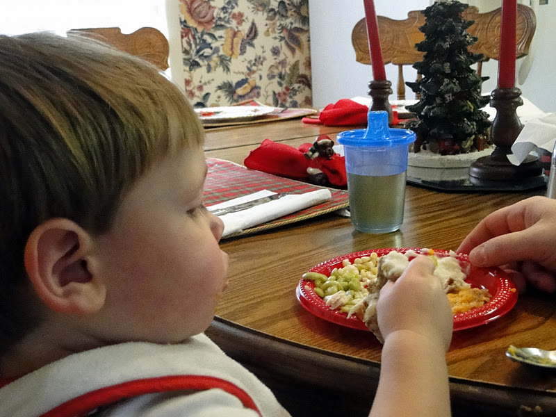 | Granna's (my mom) Christmas Tree was beautiful enough to entertain James for hours! |